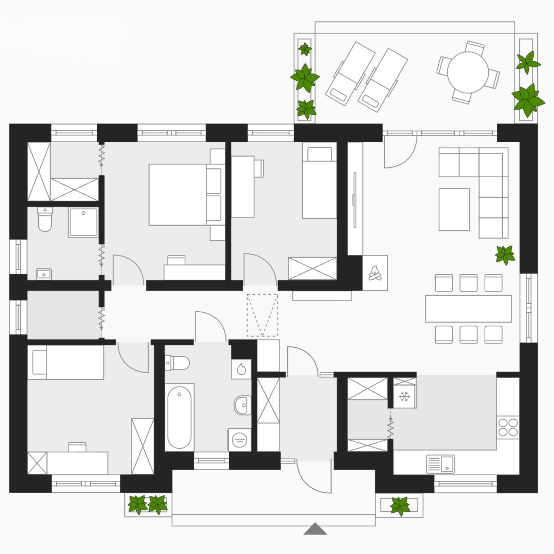 A Berlin 8 egy jól átgondolt alaprajzzal rendelkező egyszintes ház, amely a praktikumot és a családi élet kényelmét részesíti előnyben. A tágas nappali és étkező a lakás központi élettere, amelyhez szorosan kapcsolódik a kényelmes, jól felszerelhető konyha. A ház három szobája többféle funkcióra is alkalmas. A két fürdőszoba kiváló megoldás akkor, ha több generáció vagy nagyobb család él együtt. A kamra, a háztartási helyiség és a gardrób további tárolóhelyet adnak, így könnyebb a rendezettség fenntartása a mindennapokban.