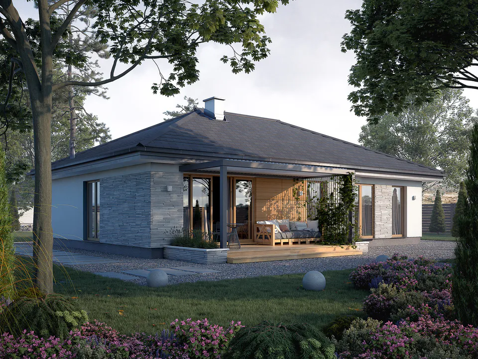 A gondosan elosztott terek és a funkcionális helyiségek miatt ez a ház ideális választás kisebb családok számára, akik kompakt, mégis modern és élhető otthonban gondolkodnak.