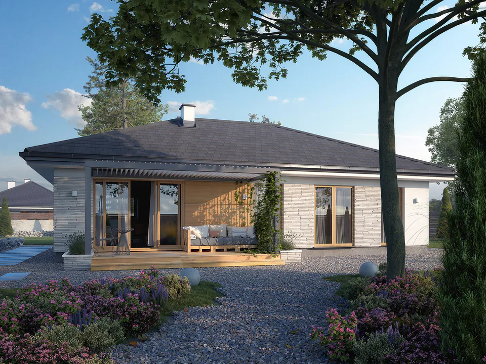 A Berlin 8 egy kompakt, mégis tágas kialakítású egyszintes családi otthon. A közel 100 négyzetméteres hasznos alapterület kiválóan alkalmas olyan családok számára, akik jól szervezett, könnyen berendezhető tereket szeretnének. A három hálószoba, a két fürdőszoba és a világos nappali együttese kényelmes és élhető mindennapokat biztosít. A nyitott étkező és a praktikus konyha jól kapcsolódik a központi élettérhez. A Berlin 8 olyan megoldás, amely kis alapterületen is biztosítja a modern otthonok kényelmét.